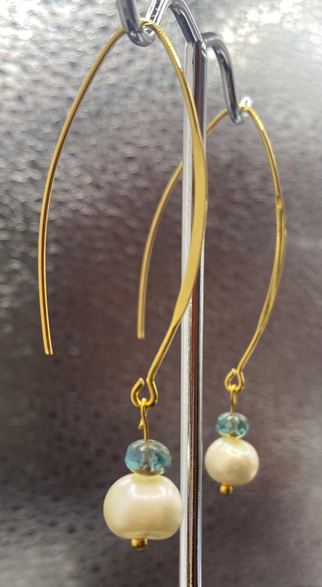 La bella luna--the beautiful moon--is exemplified in these elegant pearl and crystal earrings. A lustrous full moon sparkling under starlight comes to mind. Pearl and hand-faceted, fire polished Czech crystals gleam and sway below the elegant arch of gold-plated steel horse eye hoops. These earrings are fit for a goddess: Artemis or you.