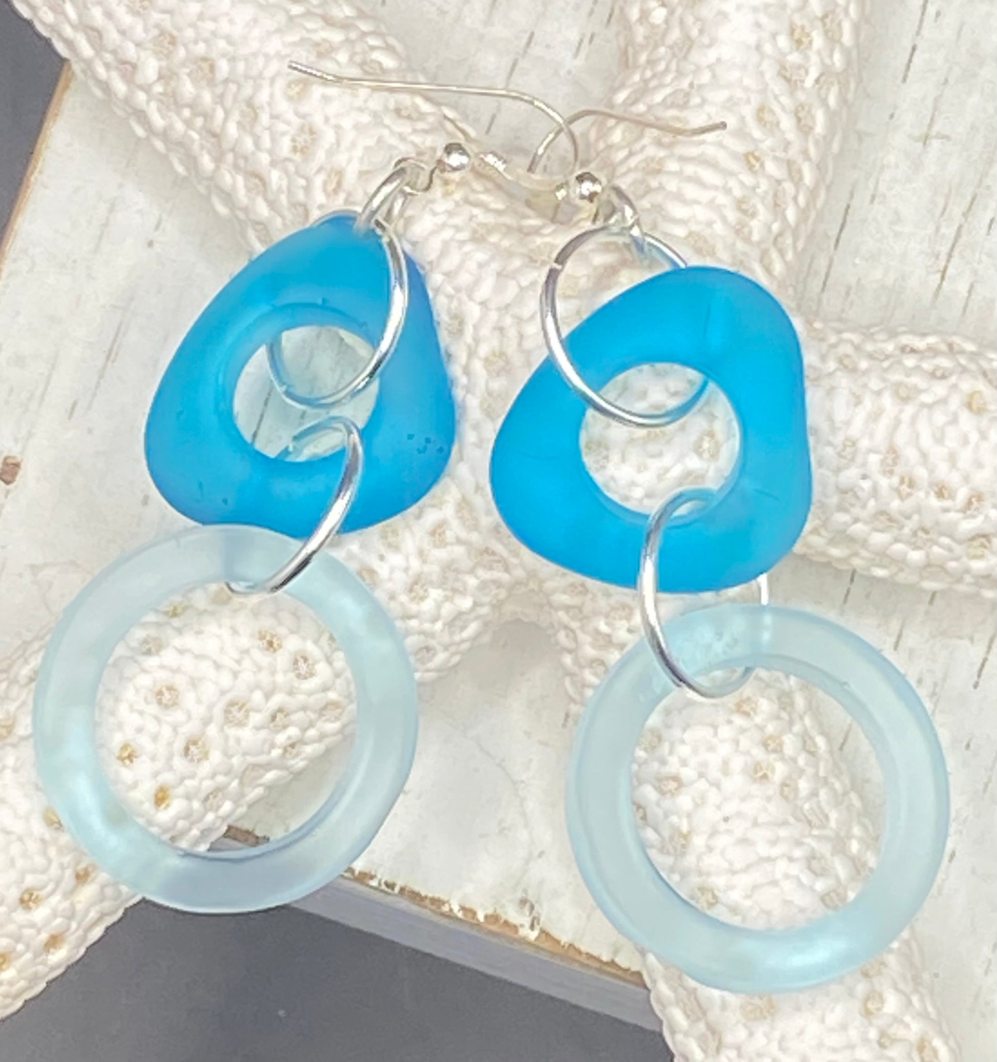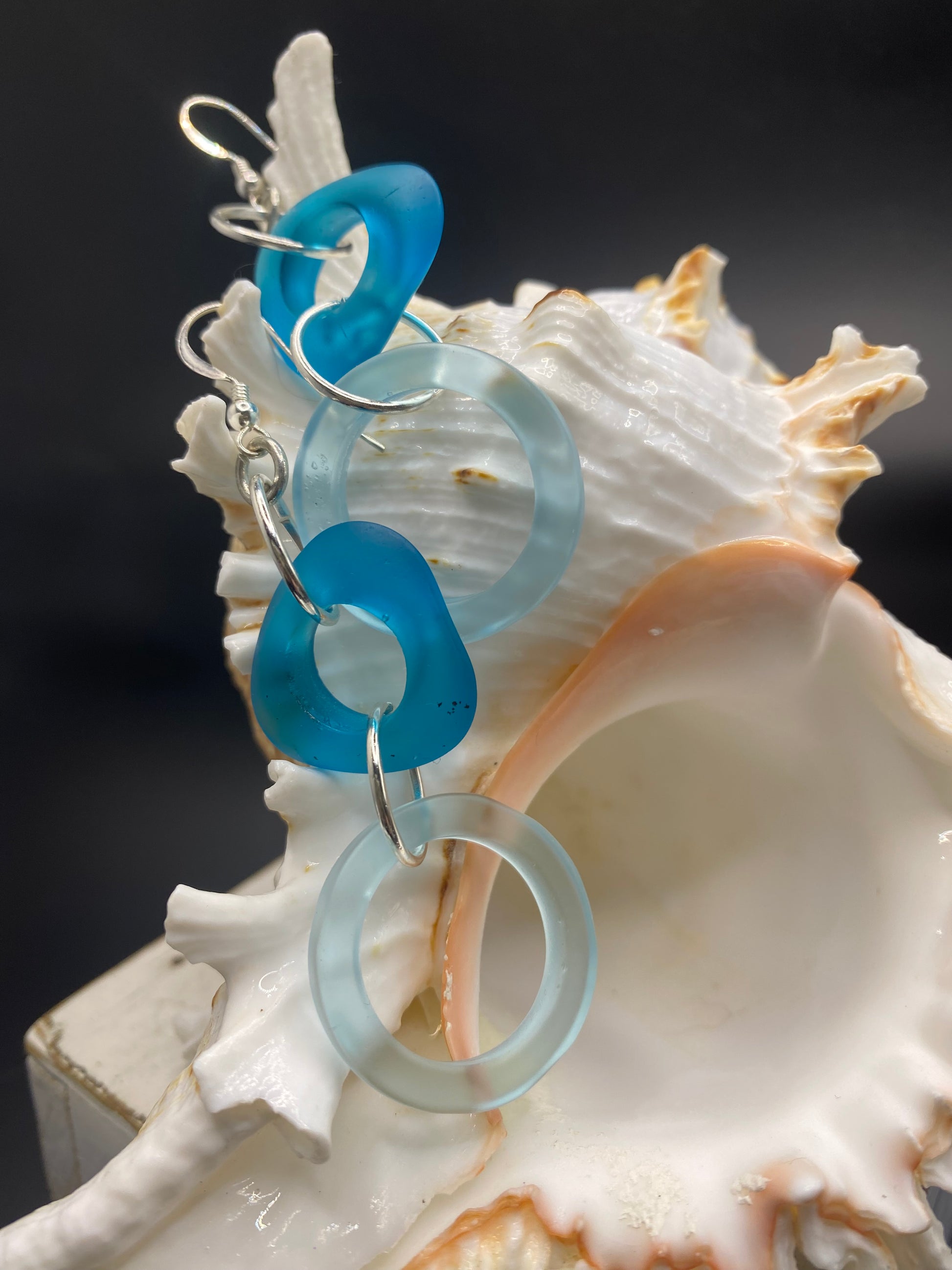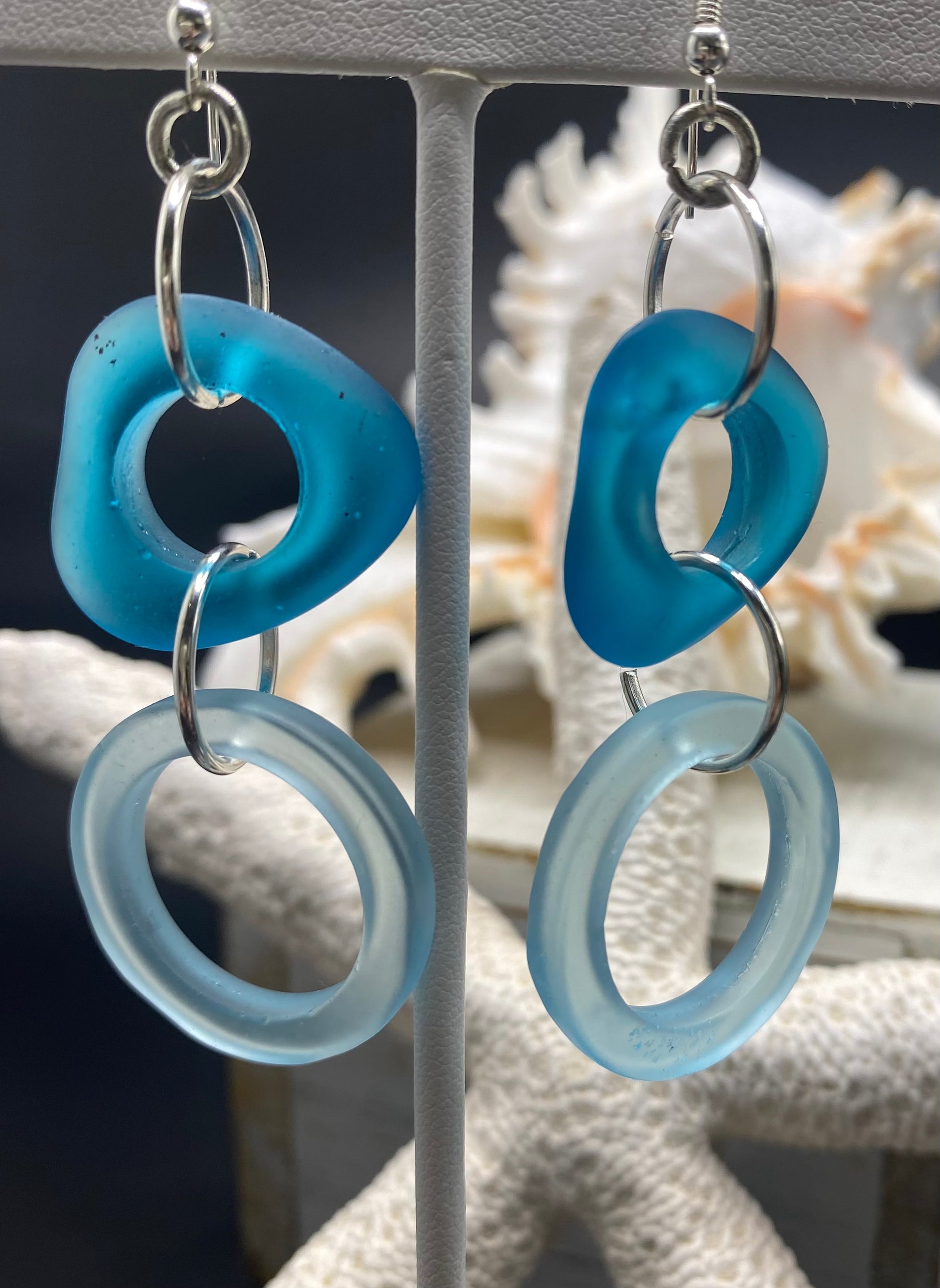What a gorgeous day at the beach! And you look stunning in these peacock blue and teal beach glass earrings. Just like you, they sway and rest and catch the light shining off the ocean waves. Recycled materials for the love of Mother Earth.