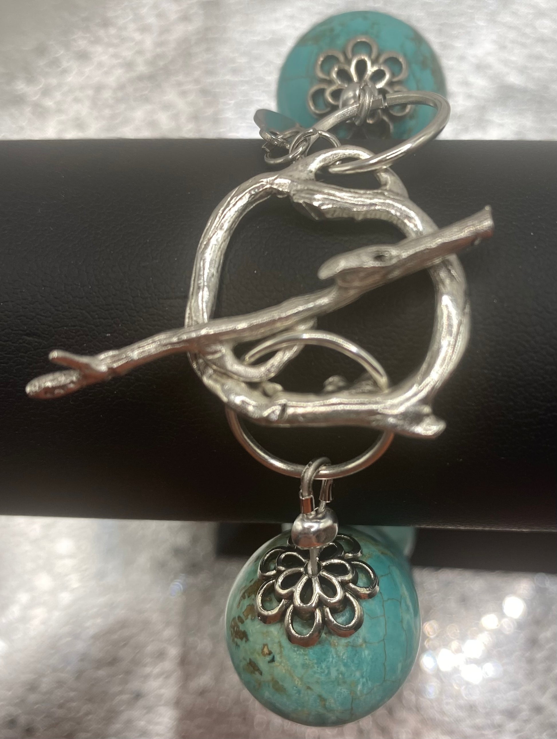 - Silver plate, turquoise magnesite, howlite turquoise.