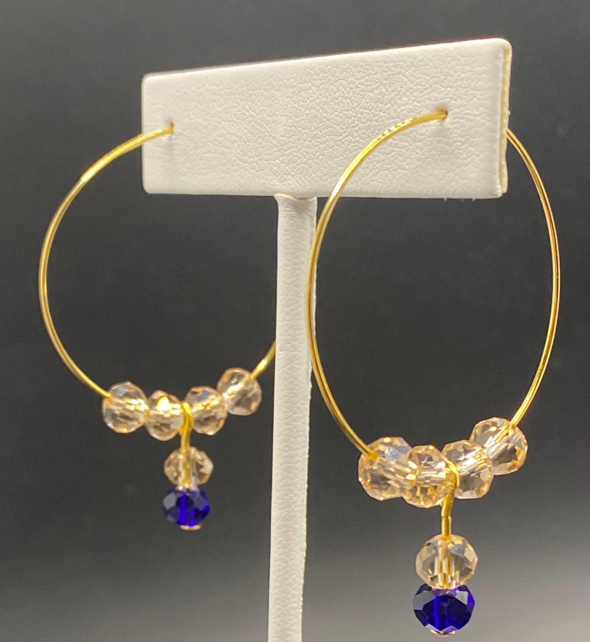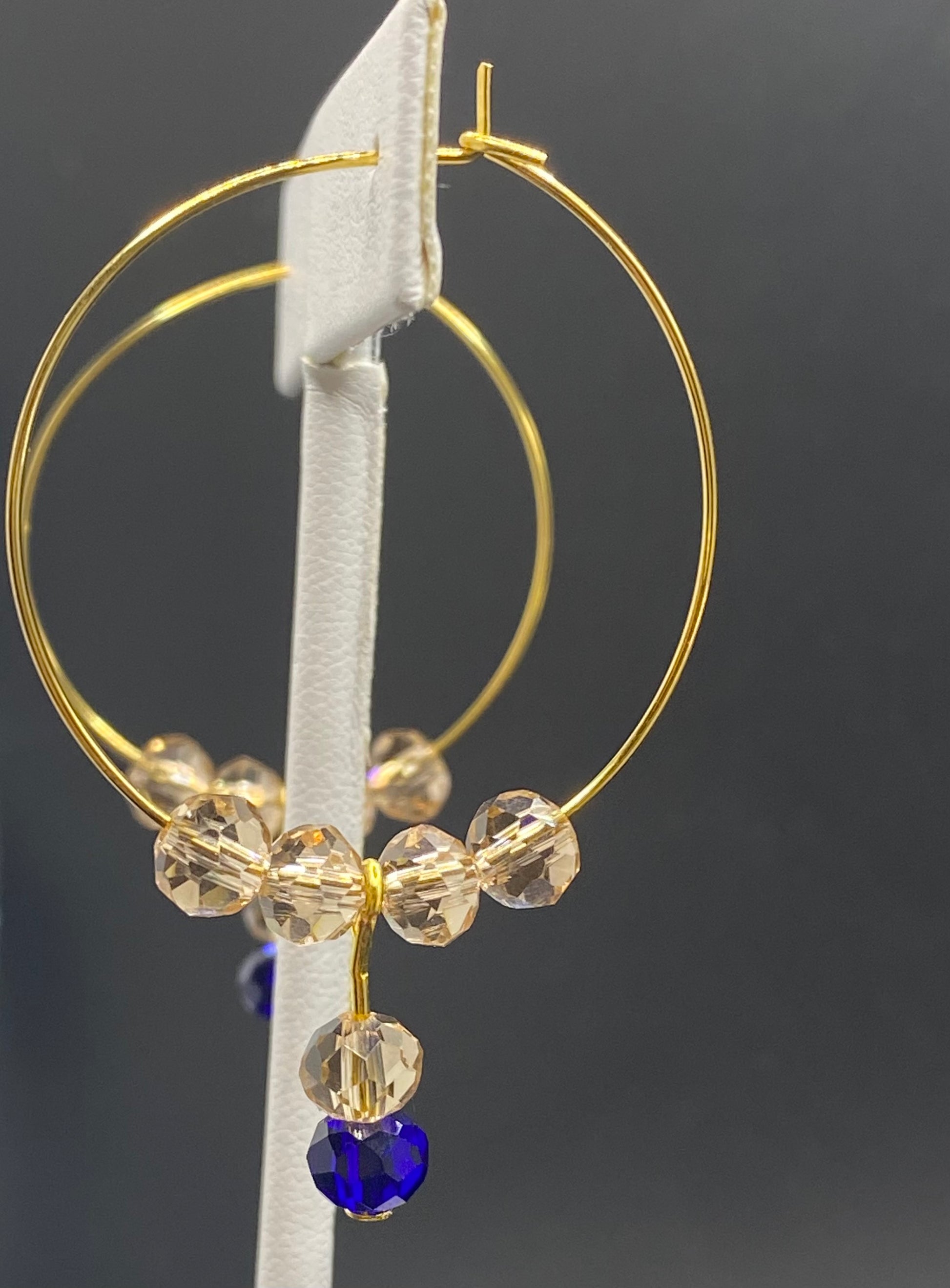 SMOKY CHAMPAGNE AND COBALT HOOP EARRINGS